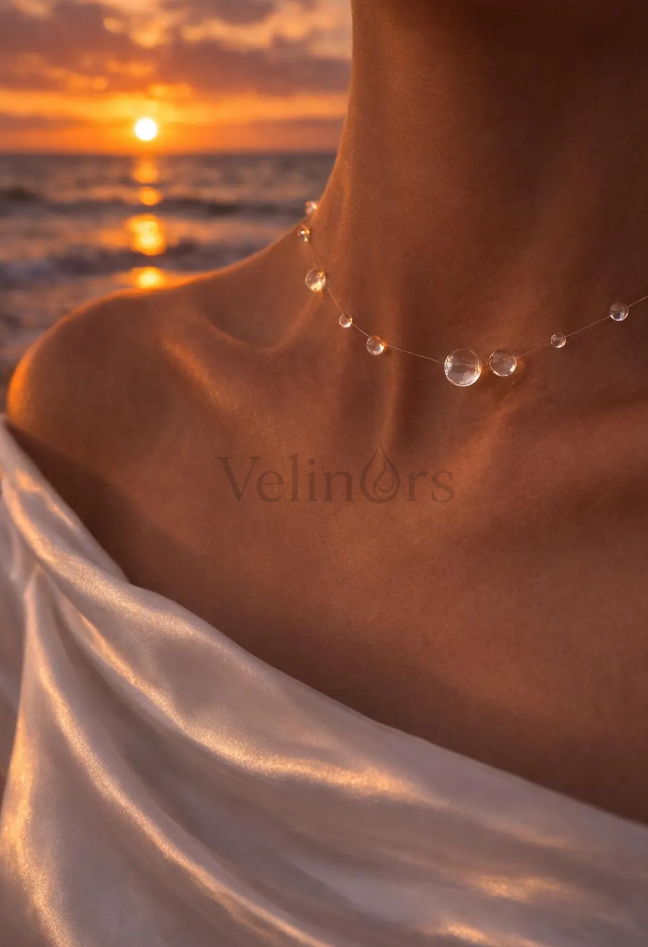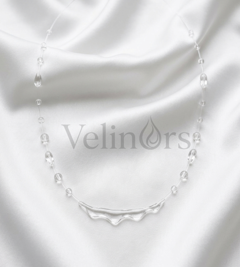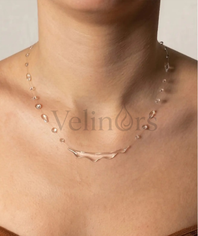 Velinors’un zarif şeffaf kolyesi, minimal tasarımıyla hem günlük kombinlere hem de özel anlarınıza kusursuz bir şekilde uyum sağlar.